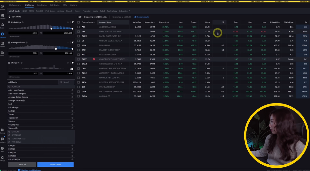 Once the screener’s open, you’ll see a bunch of filtering criteria. Add specific parameters based on what you’re after in stocks.